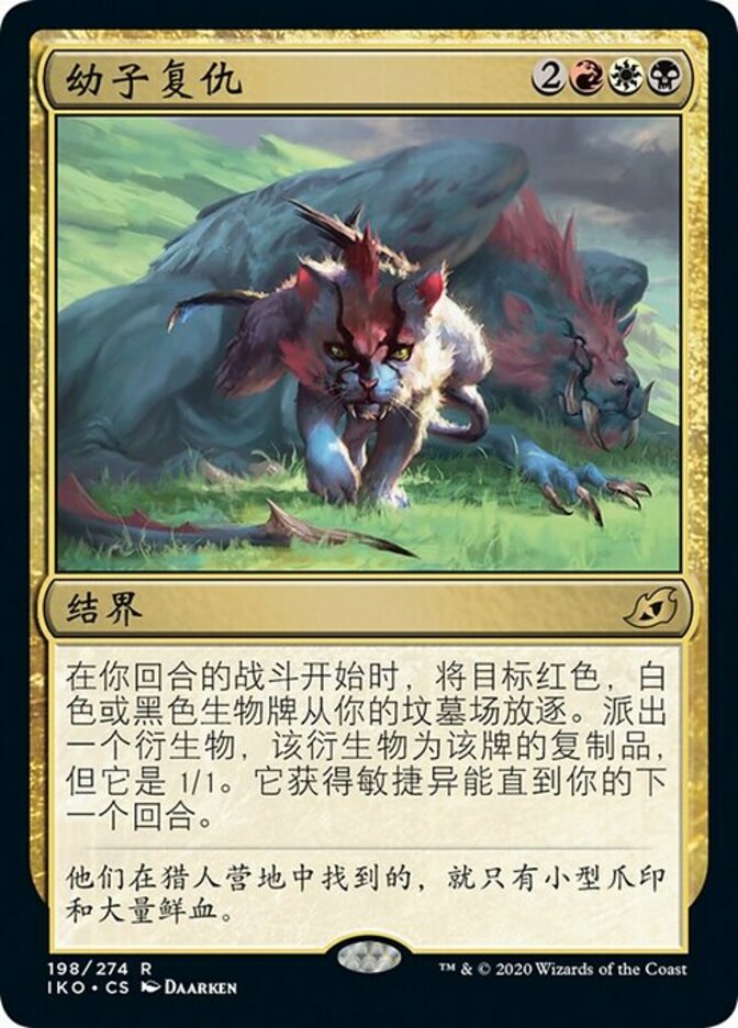 | Rules | At the beginning of combat on your turn, exile target red, white, or black creature card from your graveyard. Create a token that's a copy of that card, except it's 1/1. It gains haste until your next turn. |