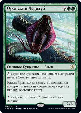 | Rules | Attacking creatures you control have deathtouch. Whenever a creature you control deals combat damage to a player, draw a card. |