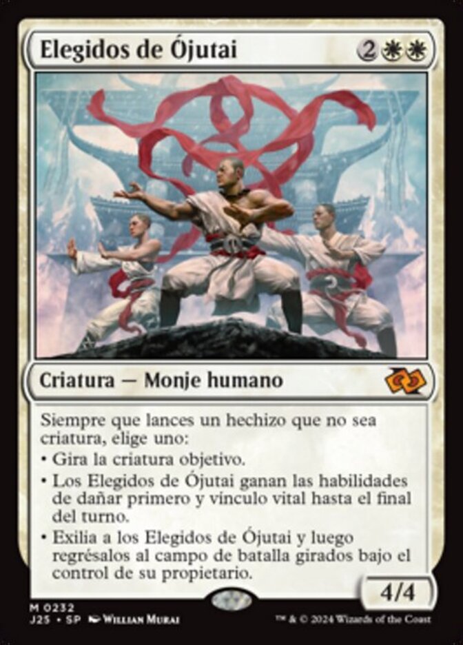 | Rules | Whenever you cast a noncreature spell, choose one — • Tap target creature. • Ojutai Exemplars gains first strike and lifelink until end of turn. • Exile Ojutai Exemplars, then return it to the battlefield tapped under its owner's control. |