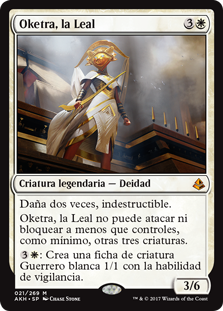 | Rules | Double strike, indestructible Oketra the True can't attack or block unless you control at least three other creatures. : Create a 1/1 white Warrior creature token with vigilance. |