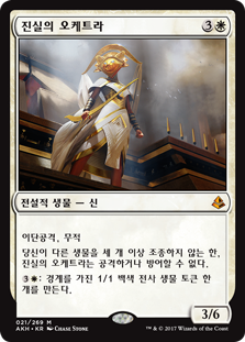 | Rules | Double strike, indestructible Oketra the True can't attack or block unless you control at least three other creatures. : Create a 1/1 white Warrior creature token with vigilance. |