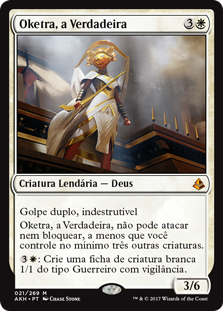 | Rules | Double strike, indestructible Oketra the True can't attack or block unless you control at least three other creatures. : Create a 1/1 white Warrior creature token with vigilance. |