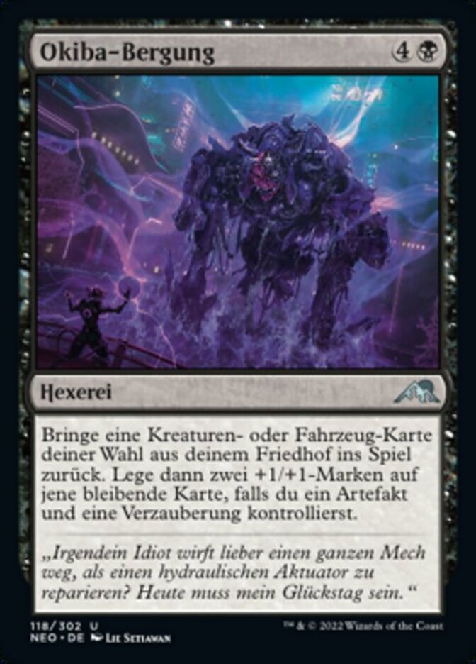 | Rules | Return target creature or Vehicle card from your graveyard to the battlefield. Then put two +1/+1 counters on that permanent if you control an artifact and an enchantment. |