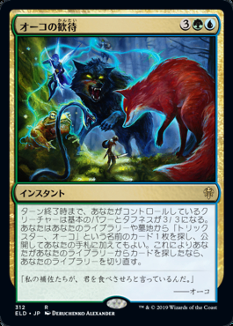 | Rules | Creatures you control have base power and toughness 3/3 until end of turn. You may search your library and/or graveyard for a card named Oko, the Trickster, reveal it, and put it into your hand. If you search your library this way, shuffle. |