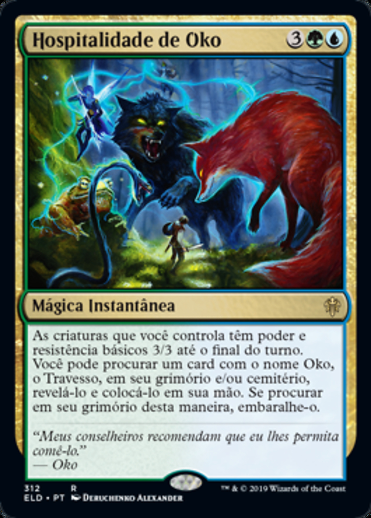 | Rules | Creatures you control have base power and toughness 3/3 until end of turn. You may search your library and/or graveyard for a card named Oko, the Trickster, reveal it, and put it into your hand. If you search your library this way, shuffle. |