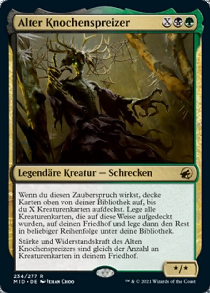| Rules | When you cast this spell, reveal cards from the top of your library until you reveal X creature cards. Put all creature cards revealed this way into your graveyard, then put the rest on the bottom of your library in a random order. Old Stickfingers's power and toughness are each equal to the number of creature cards in your graveyard. |