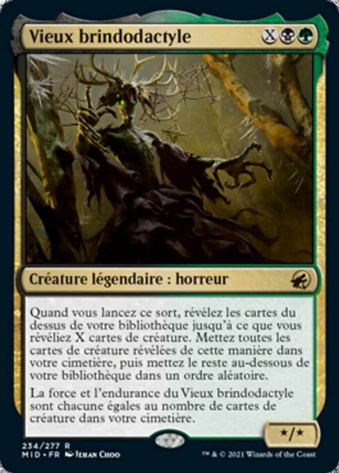 | Rules | When you cast this spell, reveal cards from the top of your library until you reveal X creature cards. Put all creature cards revealed this way into your graveyard, then put the rest on the bottom of your library in a random order. Old Stickfingers's power and toughness are each equal to the number of creature cards in your graveyard. |