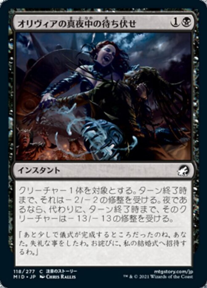 | Rules | Target creature gets -2/-2 until end of turn. If it's night, that creature gets -13/-13 until end of turn instead. |