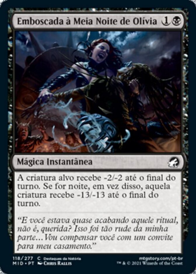 | Rules | Target creature gets -2/-2 until end of turn. If it's night, that creature gets -13/-13 until end of turn instead. |