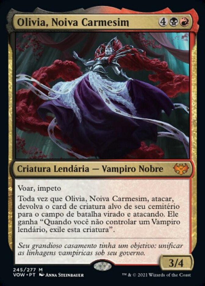 | Rules | Flying, haste Whenever Olivia, Crimson Bride attacks, return target creature card from your graveyard to the battlefield tapped and attacking. It gains "When you don't control a legendary Vampire, exile this creature." |