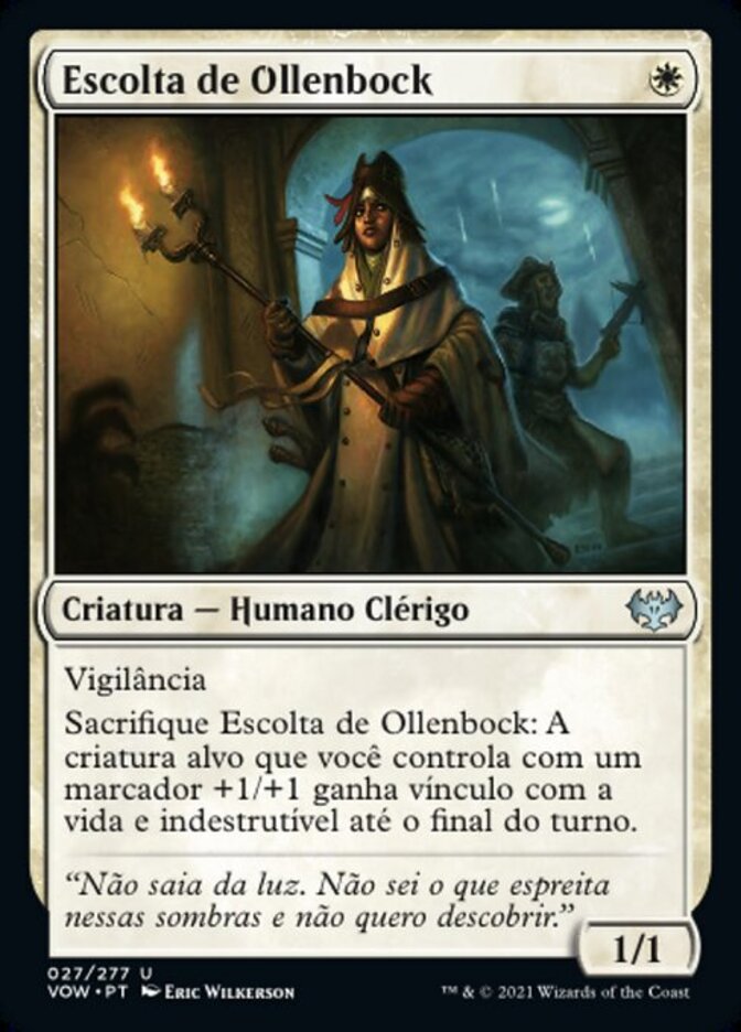 | Rules | Vigilance Sacrifice Ollenbock Escort: Target creature you control with a +1/+1 counter on it gains lifelink and indestructible until end of turn. |