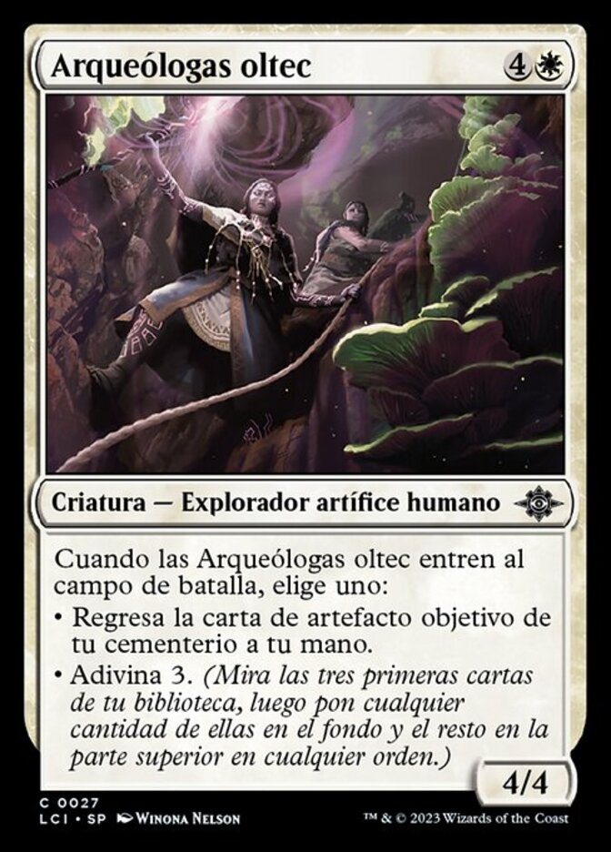 | Rules | When Oltec Archaeologists enters the battlefield, choose one — • Return target artifact card from your graveyard to your hand. • Scry 3. (Look at the top three cards of your library, then put any number of them on the bottom and the rest on top in any order.) |