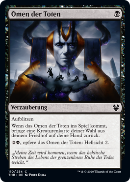 | Rules | Flash When Omen of the Dead enters the battlefield, return target creature card from your graveyard to your hand. , Sacrifice Omen of the Dead: Scry 2. |