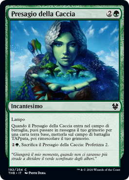 | Rules | Flash When Omen of the Hunt enters the battlefield, you may search your library for a basic land card, put it onto the battlefield tapped, then shuffle. , Sacrifice Omen of the Hunt: Scry 2. |