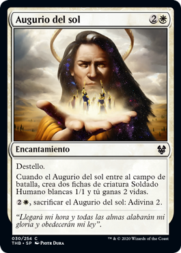 | Rules | Flash When Omen of the Sun enters the battlefield, create two 1/1 white Human Soldier creature tokens and you gain 2 life. , Sacrifice Omen of the Sun: Scry 2. |