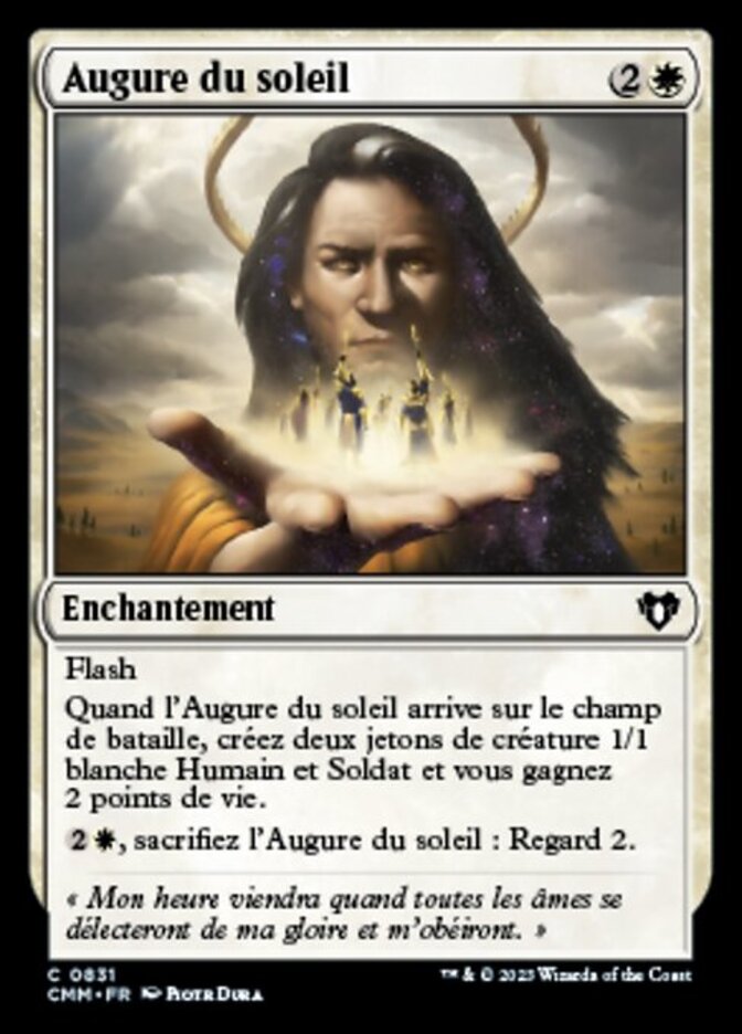 | Rules | Flash When Omen of the Sun enters the battlefield, create two 1/1 white Human Soldier creature tokens and you gain 2 life. , Sacrifice Omen of the Sun: Scry 2. |