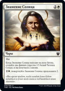 | Rules | Flash When Omen of the Sun enters the battlefield, create two 1/1 white Human Soldier creature tokens and you gain 2 life. , Sacrifice Omen of the Sun: Scry 2. |