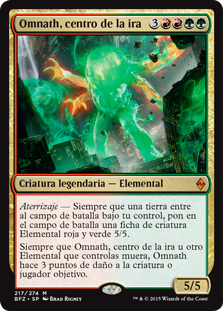 | Rules | Landfall — Whenever a land enters the battlefield under your control, create a 5/5 red and green Elemental creature token. Whenever Omnath, Locus of Rage or another Elemental you control dies, Omnath deals 3 damage to any target. |