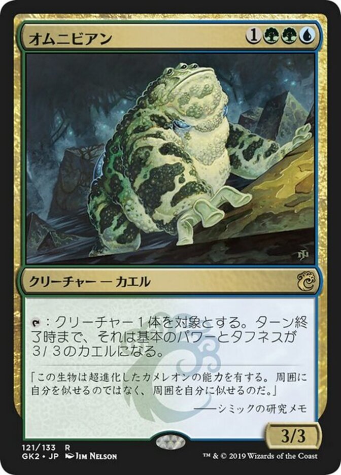 | Rules | : Target creature becomes a Frog with base power and toughness 3/3 until end of turn. |
