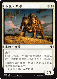 | Flavor | "May your horns get lodged in an Eldrazi's bony face, ornery brute!"-Bruse Tarl, Goma Fada nomad |