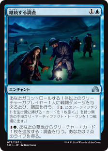 | Rules | Whenever one or more creatures you control deal combat damage to a player, investigate. (Create a colorless Clue artifact token with ", Sacrifice this artifact: Draw a card.") , Exile a creature card from your graveyard: Investigate. You gain 2 life. |