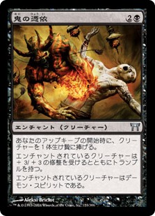 | Rules | Enchant creature At the beginning of your upkeep, sacrifice a creature. Enchanted creature gets +3/+3 and has trample. Enchanted creature is a Demon Spirit. |