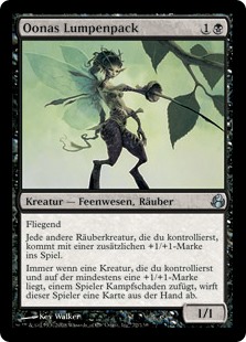 | Rules | Flying Each other Rogue creature you control enters the battlefield with an additional +1/+1 counter on it. Whenever a creature you control with a +1/+1 counter on it deals combat damage to a player, that player discards a card. |