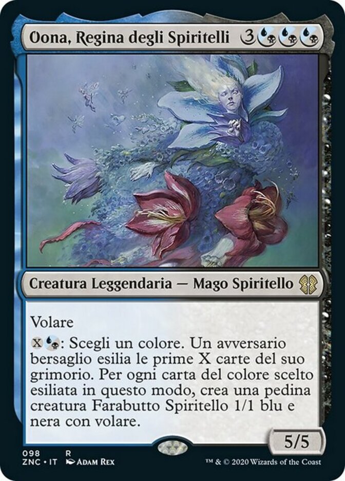 | Rules | Flying : Choose a color. Target opponent exiles the top X cards of their library. For each card of the chosen color exiled this way, create a 1/1 blue and black Faerie Rogue creature token with flying. |