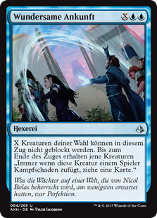 | Rules | X target creatures can't be blocked this turn. Until end of turn, those creatures gain "Whenever this creature deals combat damage to a player, draw a card." |