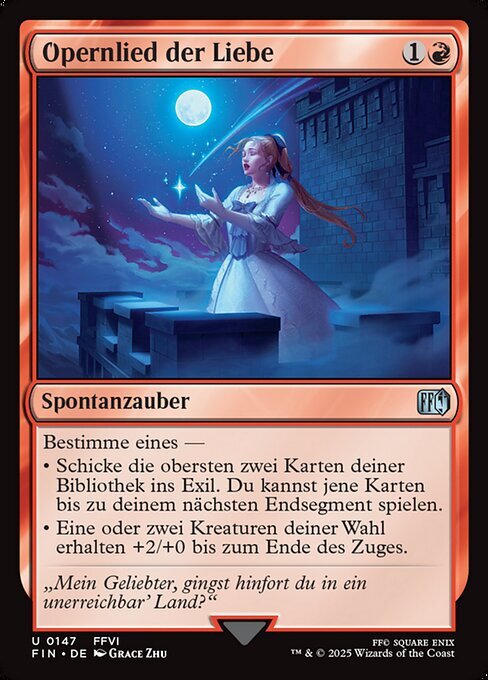 | Rules | Choose one — • Exile the top two cards of your library. You may play those cards until your next end step. • One or two target creatures each get +2/+0 until end of turn. |