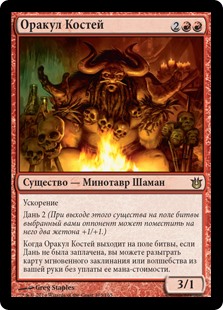 | Rules | Haste Tribute 2 (As this creature enters the battlefield, an opponent of your choice may put two +1/+1 counters on it.) When Oracle of Bones enters the battlefield, if tribute wasn't paid, you may cast an instant or sorcery spell from your hand without paying its mana cost. |
