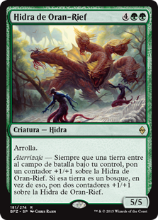 | Rules | Trample Landfall — Whenever a land enters the battlefield under your control, put a +1/+1 counter on Oran-Rief Hydra. If that land is a Forest, put two +1/+1 counters on Oran-Rief Hydra instead. |