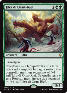 | Rules | Trample Landfall — Whenever a land enters the battlefield under your control, put a +1/+1 counter on Oran-Rief Hydra. If that land is a Forest, put two +1/+1 counters on Oran-Rief Hydra instead. |