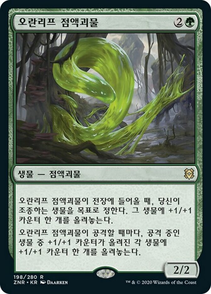 | Rules | When Oran-Rief Ooze enters the battlefield, put a +1/+1 counter on target creature you control. Whenever Oran-Rief Ooze attacks, put a +1/+1 counter on each attacking creature with a +1/+1 counter on it. |