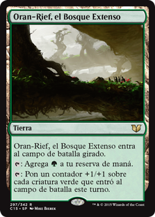 | Rules | Oran-Rief, the Vastwood enters the battlefield tapped. : Add . : Put a +1/+1 counter on each green creature that entered the battlefield this turn. |