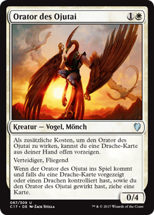 | Rules | As an additional cost to cast this spell, you may reveal a Dragon card from your hand. Defender, flying When Orator of Ojutai enters the battlefield, if you revealed a Dragon card or controlled a Dragon as you cast this spell, draw a card. |