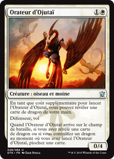 | Rules | As an additional cost to cast this spell, you may reveal a Dragon card from your hand. Defender, flying When Orator of Ojutai enters the battlefield, if you revealed a Dragon card or controlled a Dragon as you cast this spell, draw a card. |
