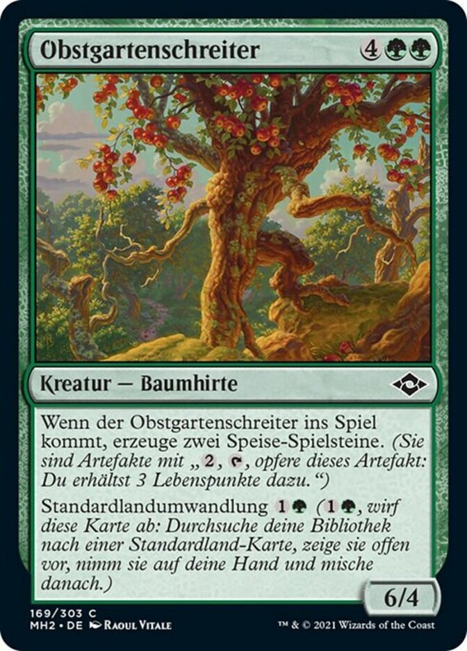 | Rules | When Orchard Strider enters the battlefield, create two Food tokens. (They're artifacts with ", , Sacrifice this artifact: You gain 3 life.") Basic landcycling (, Discard this card: Search your library for a basic land card, reveal it, put it into your hand, then shuffle.) |