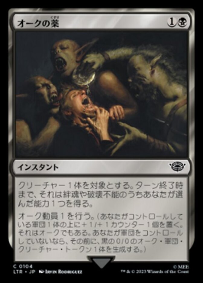 | Rules | Target creature gains your choice of lifelink or indestructible until end of turn. Amass Orcs 1. (Put a +1/+1 counter on an Army you control. It's also an Orc. If you don't control an Army, create a 0/0 black Orc Army creature token first.) |