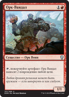 | Rules | , Sacrifice an artifact: Orcish Vandal deals 2 damage to any target. |