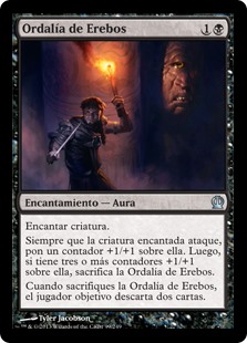 | Rules | Enchant creature Whenever enchanted creature attacks, put a +1/+1 counter on it. Then if it has three or more +1/+1 counters on it, sacrifice Ordeal of Erebos. When you sacrifice Ordeal of Erebos, target player discards two cards. |