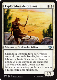 | Rules | When Oreskos Explorer enters the battlefield, search your library for up to X Plains cards, where X is the number of players who control more lands than you. Reveal those cards, put them into your hand, then shuffle. |