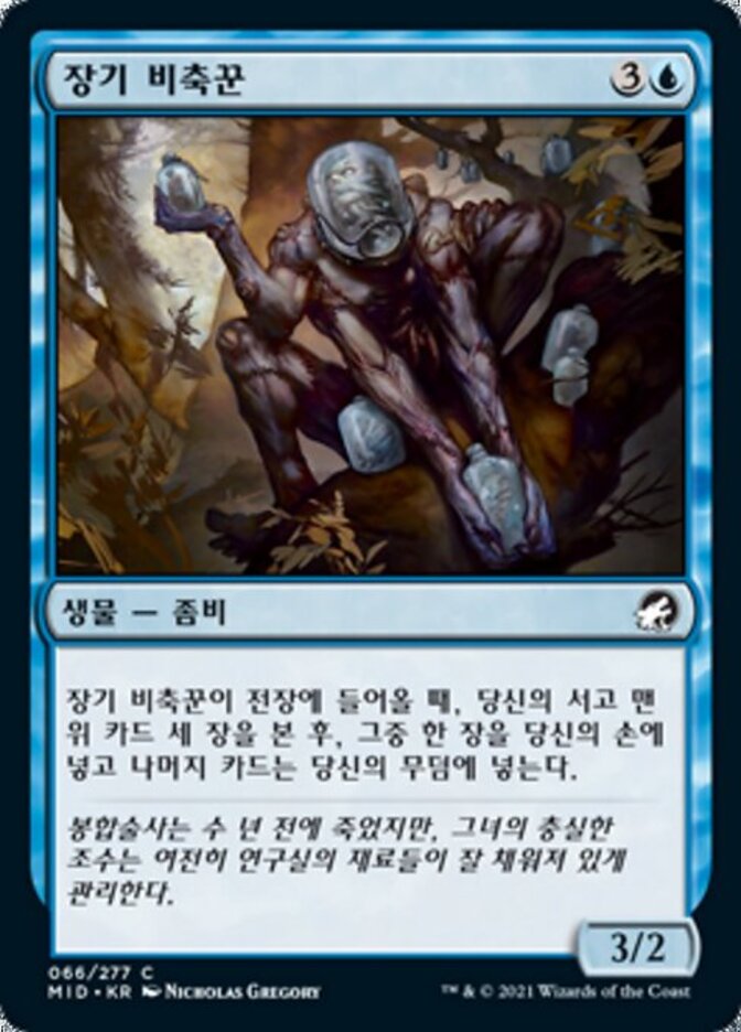 | Rules | When Organ Hoarder enters the battlefield, look at the top three cards of your library, then put one of them into your hand and the rest into your graveyard. |