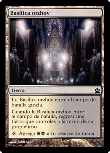 | Rules | Orzhov Basilica enters the battlefield tapped. When Orzhov Basilica enters the battlefield, return a land you control to its owner's hand. : Add . |