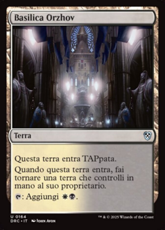 | Rules | Orzhov Basilica enters the battlefield tapped. When Orzhov Basilica enters the battlefield, return a land you control to its owner's hand. : Add . |
