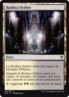 | Rules | Orzhov Basilica enters the battlefield tapped. When Orzhov Basilica enters the battlefield, return a land you control to its owner's hand. : Add . |