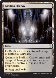 | Rules | Orzhov Basilica enters the battlefield tapped. When Orzhov Basilica enters the battlefield, return a land you control to its owner's hand. : Add . |