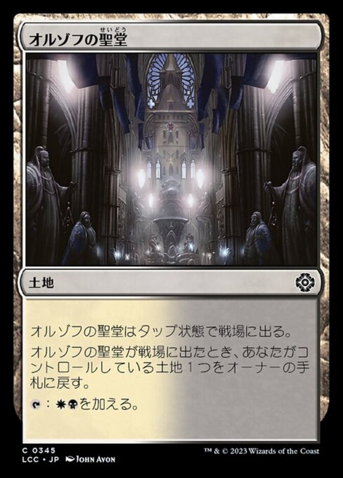 | Rules | Orzhov Basilica enters the battlefield tapped. When Orzhov Basilica enters the battlefield, return a land you control to its owner's hand. : Add . |