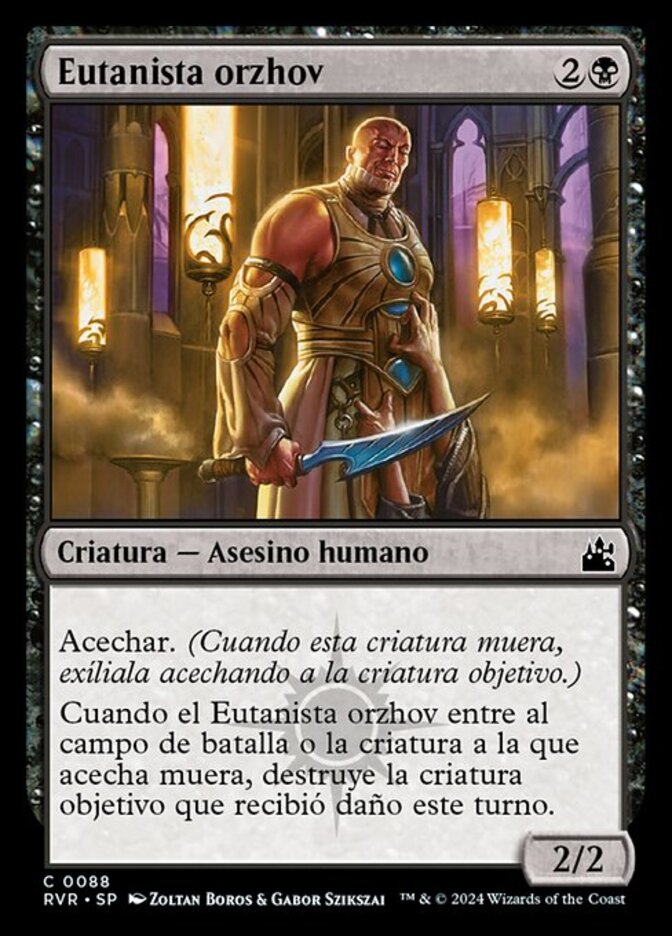 | Rules | Haunt (When this creature dies, exile it haunting target creature.) When Orzhov Euthanist enters the battlefield or the creature it haunts dies, destroy target creature that was dealt damage this turn. |