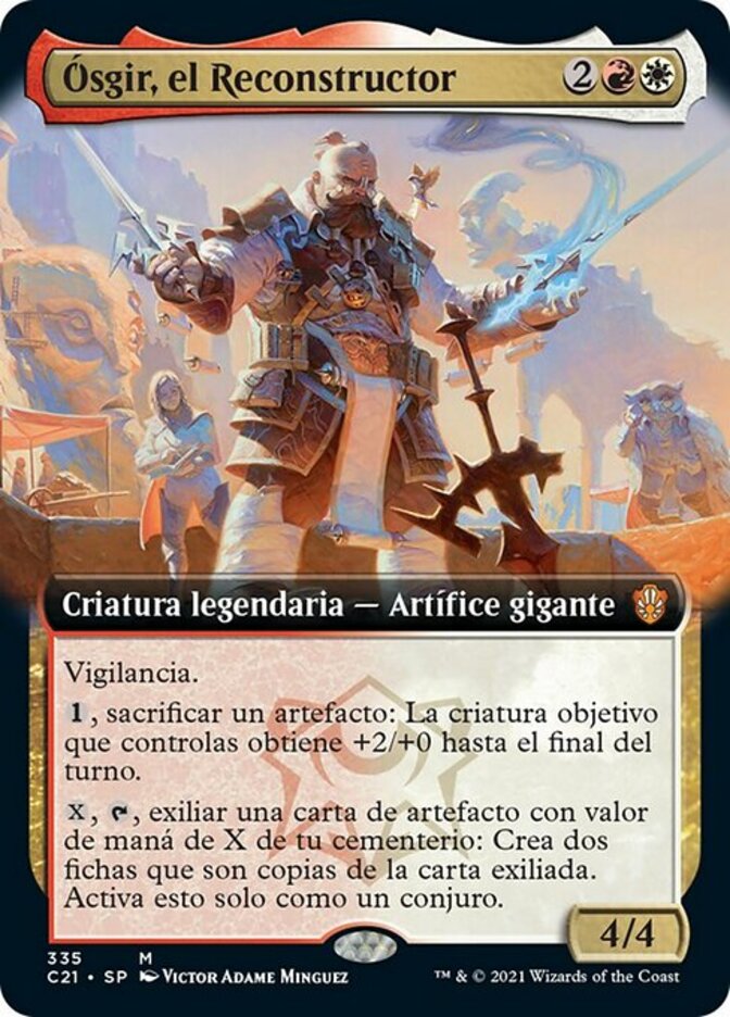 | Rules | Vigilance , Sacrifice an artifact: Target creature you control gets +2/+0 until end of turn. , , Exile an artifact card with mana value X from your graveyard: Create two tokens that are copies of the exiled card. Activate only as a sorcery. |